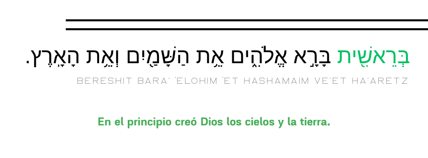בְּרֵאשִׁ֖ית בָּרָ֣א אֱלֹהִ֑ים אֵ֥ת הַשָּׁמַ֖יִם וְאֵ֥ת הָאָֽרֶץ.